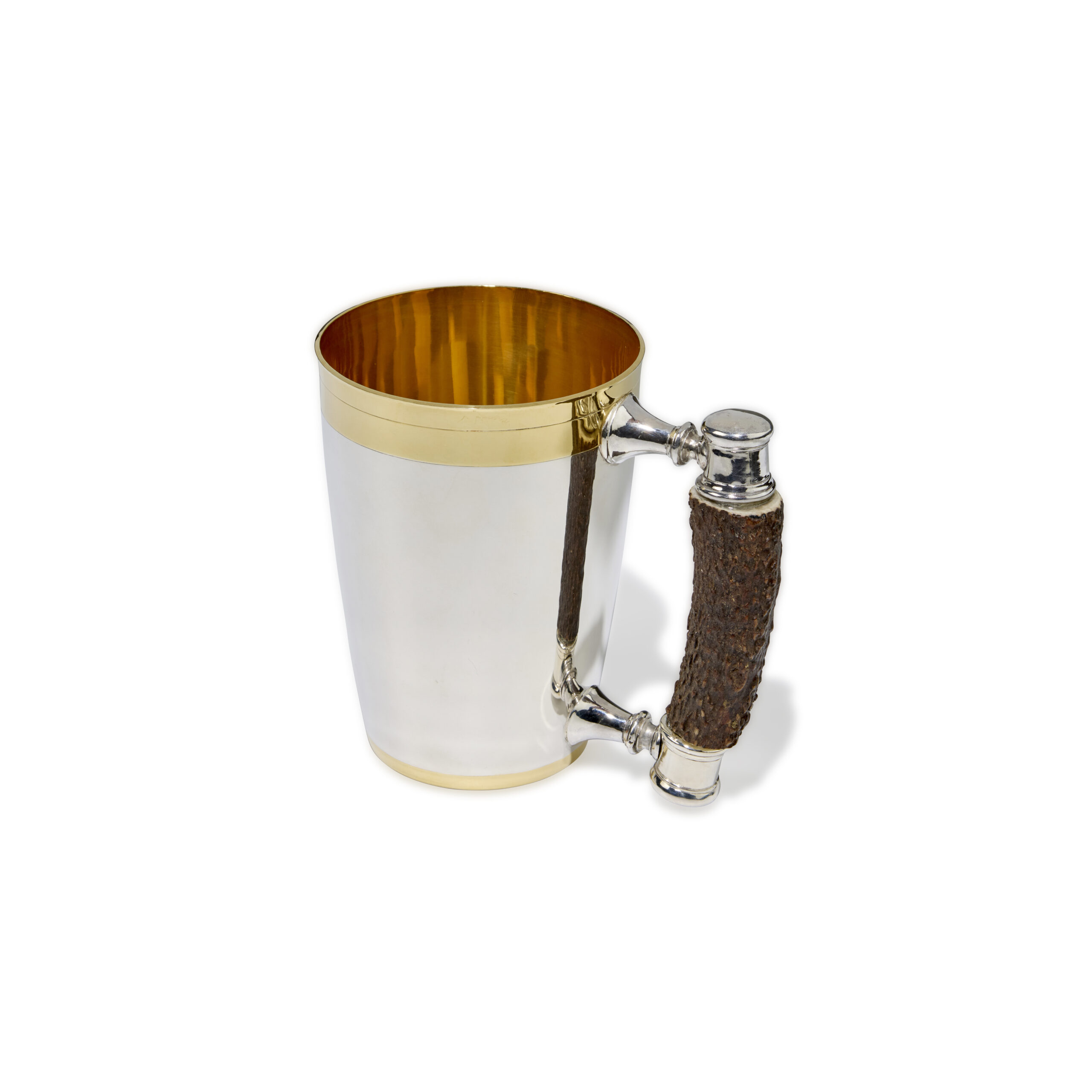 Teilvergoldeter Silberbecher mit Hirschhorngriff