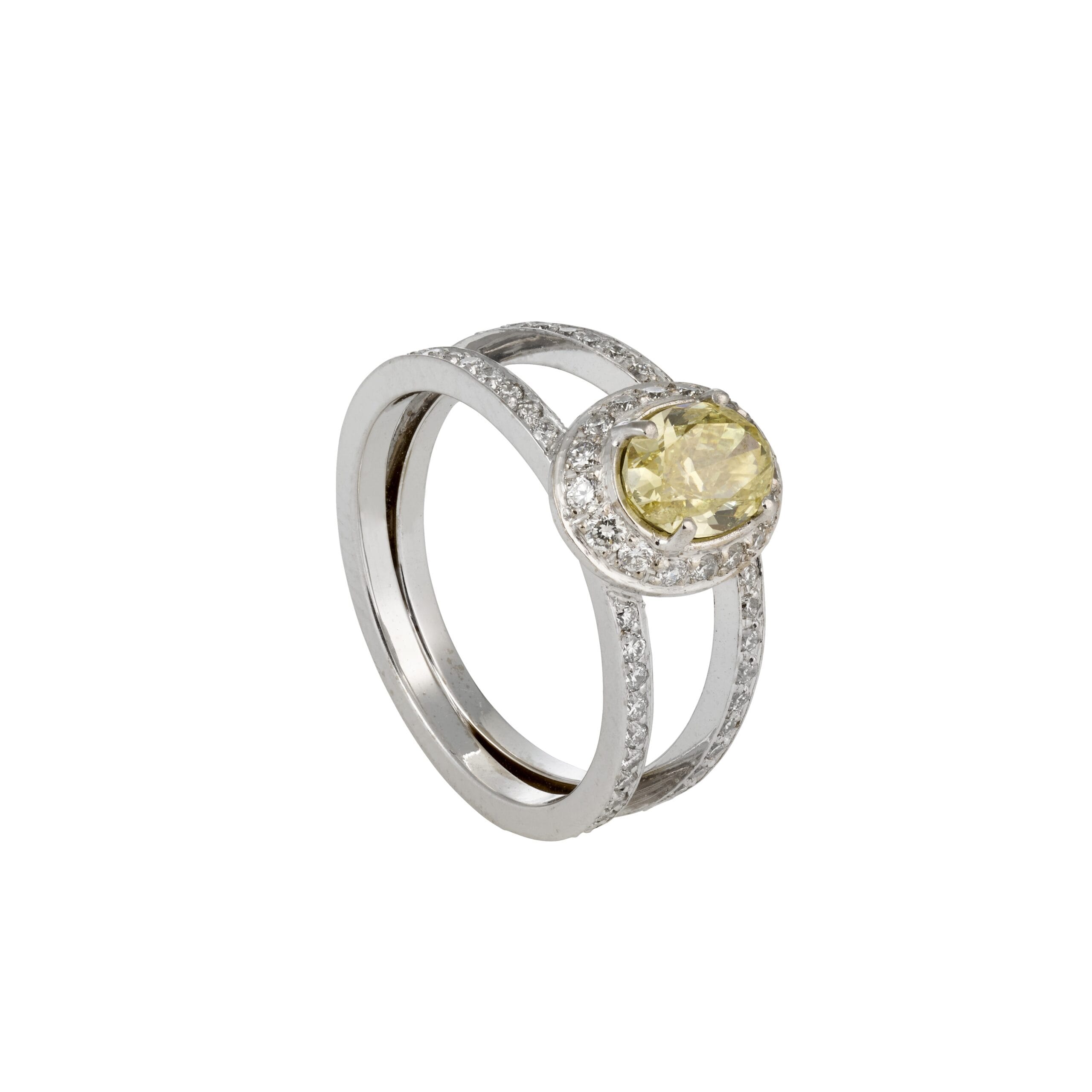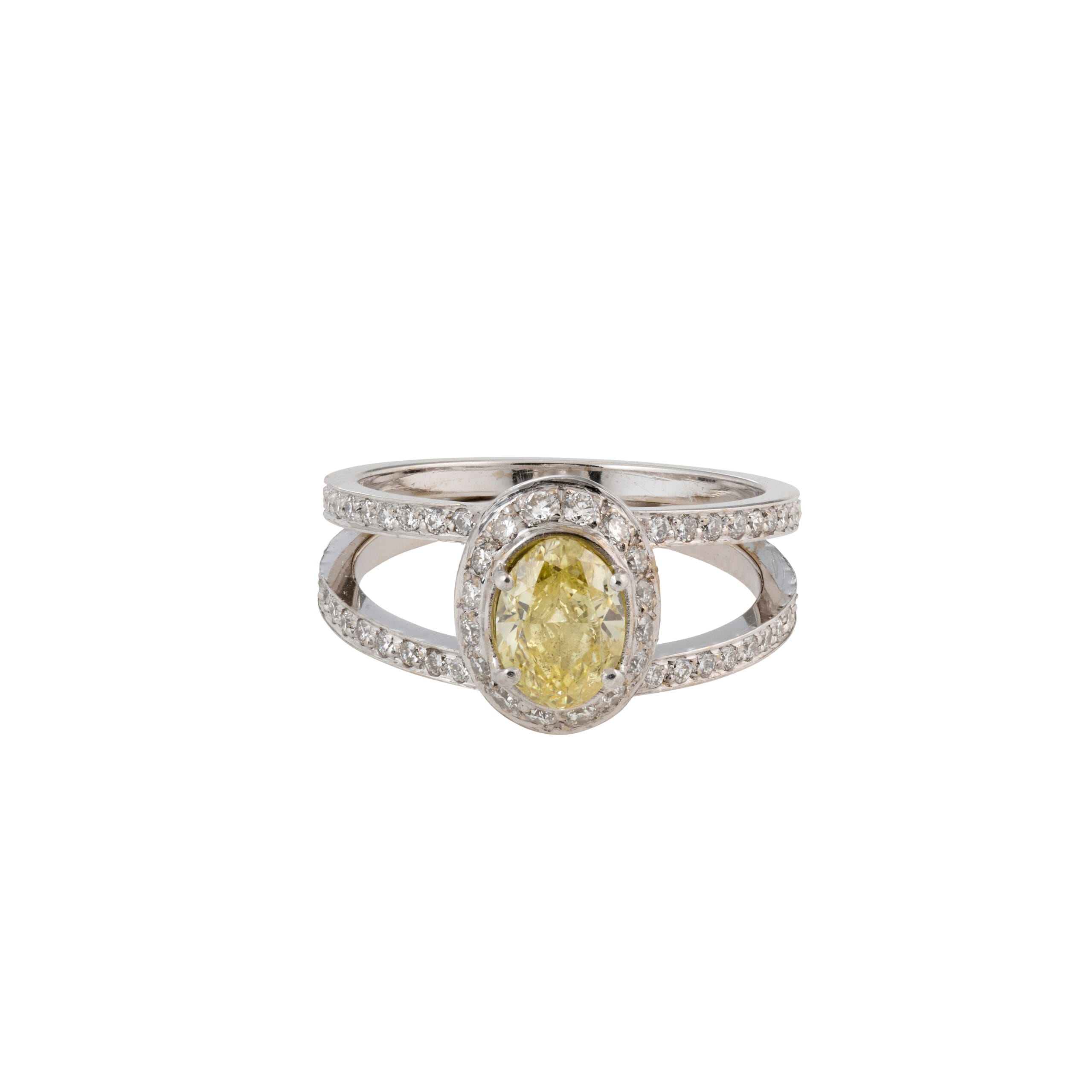Ring Fancy Halo Oval mit gelben Diamant und Brillanten
