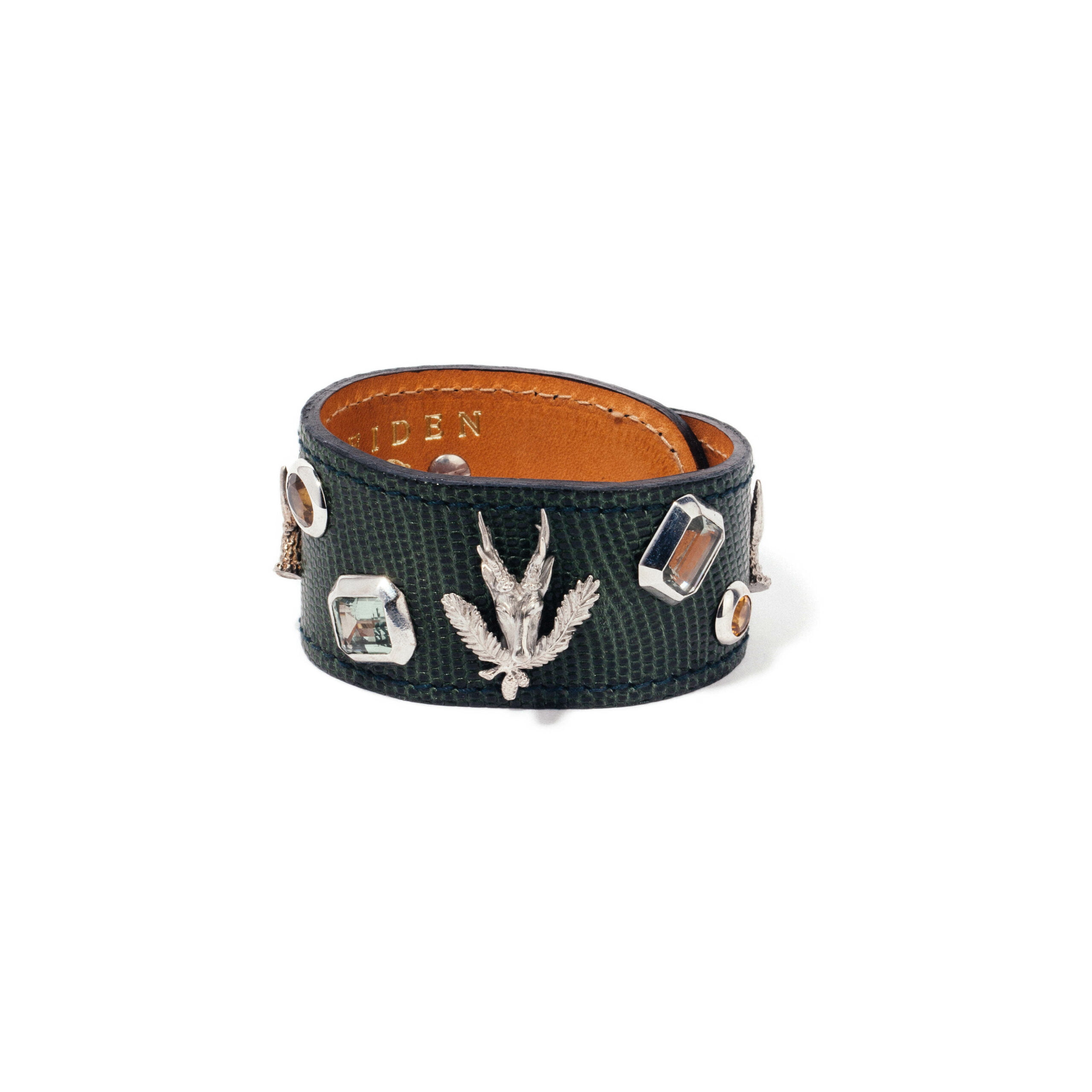 Lederarmreif Stonehenge in dunkelgrün mit Rehbock